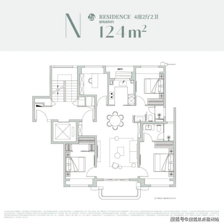 经典的四叶草布局,四开间分布在四角 ,兼顾私密与互动,是二胎家庭的优选。