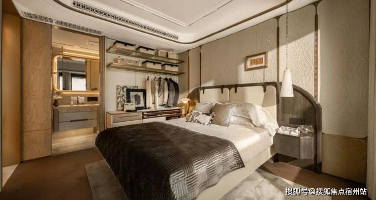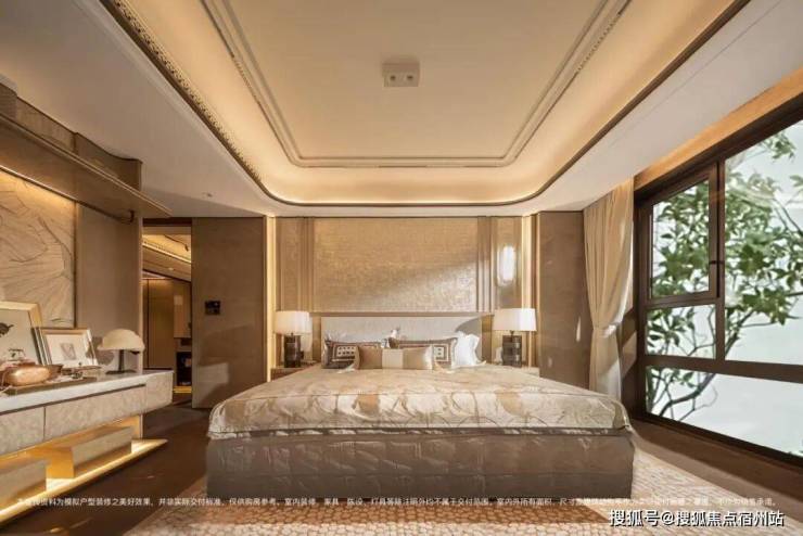 奢石材质与升级定制体系上,主卧标配约4.6米超大面宽贝母马赛克弧形皮革背景墙,地面采用和保利世博天悦顶豪项目同款的嵌铜荷叶拼地板,且嵌铜花色可以选择。玄关+背景墙升级为天然石材,真正实现 “一户一宅” 的高定体验。