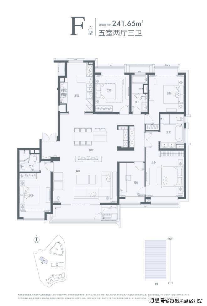 臻奢大宅的本质,是在诗意的宽敞中自由想象。建面约240㎡,高达81%的得房率,五房的功能性,是超越使用功能之上,更高层次的改善。