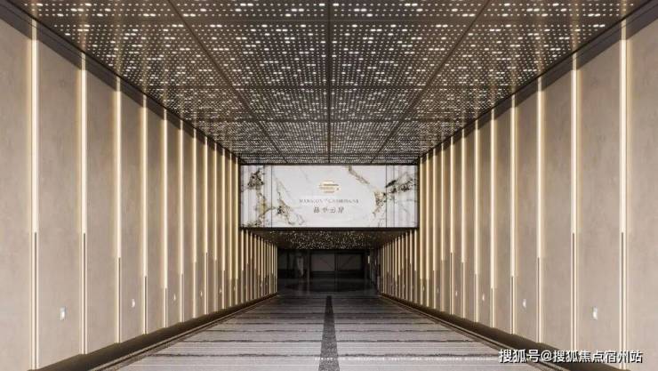 项目一楼设计星级入户大堂!挑高穹顶之下,天然石材与金属线条,交织出当代艺术馆般恢弘气度!