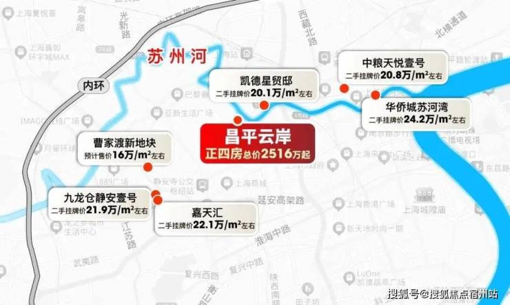 老静安核心地段,南京西路约1公里!苏州河第一界面,昌平云岸-在售少量豪装大四房, 总价约2516万起!