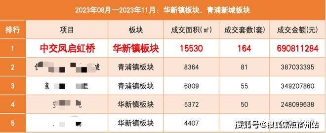 作为热销10亿+的项目,继首开之后,中交凤启虹桥再次荣登8-11月华新、青浦镇板块在售新盘中,成交套数、成交面积、成交金额三大榜首!且远超第二名成交2倍之多!名副其实的实力选手!