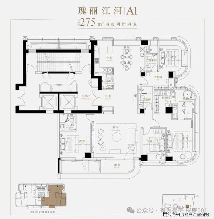 整个项目规模迷你,仅包含3栋楼共120户,但其设计定位无疑是朝着顶级豪宅的方向。全是270平米以上的大户型,每栋楼高80米,21层,算下来每层有3.6米高,这空间感,爆棚了!