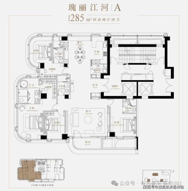 5、在285㎡的大面积下,户型设计合理,空间利用率优秀,几乎没有浪费,可以算是优秀的豪宅设计。