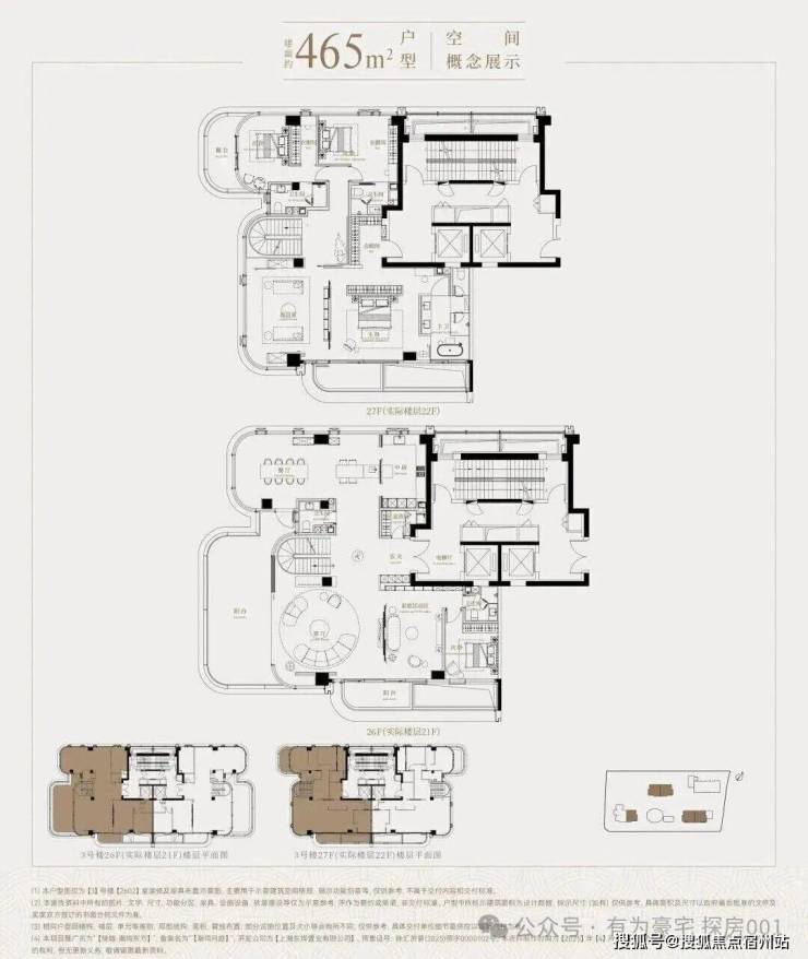 标准层面积285㎡,复式465㎡