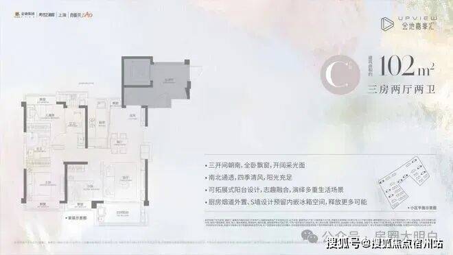 以及我们的网红爆款,建面约102㎡(C户型)三房两厅两卫,不仅保留了其小户型所有的优势,更增强了空间感和舒适度!