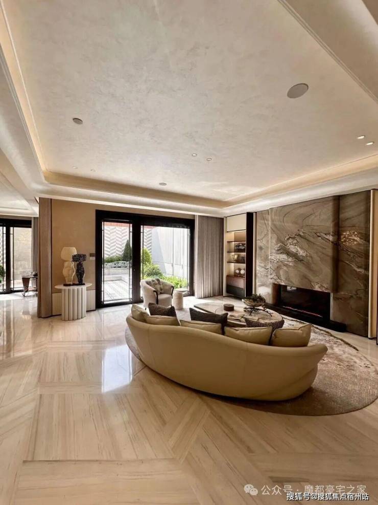 步入约260㎡样板间,奢华大气的空间叙事即刻令人惊艳。设计师采用大开间布局配合高窗墙比设计,在客餐厅区域创造出“思想共振场”——这里不仅是社交空间,更是光影与思想共舞的容器。