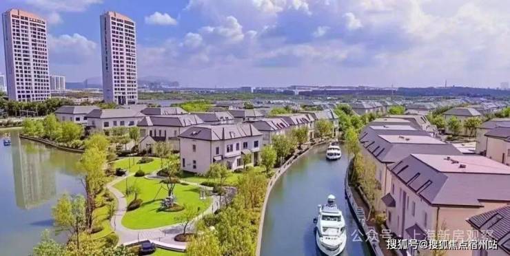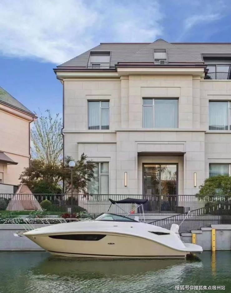 每一排别墅前都有一条渠道,引入水系,可!以!停!游!艇!