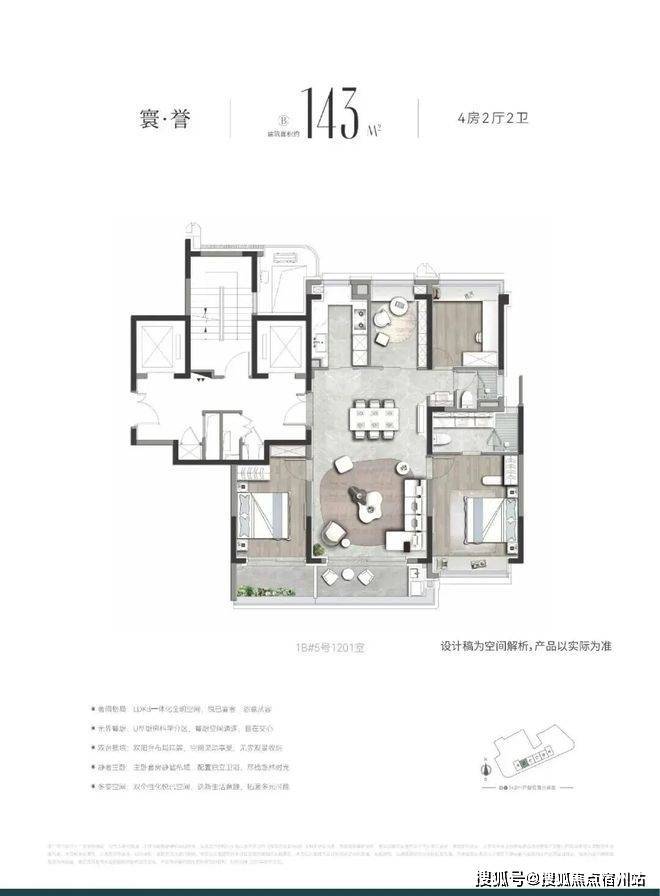 项目以130180元/㎡的过会均价,推出建面约143㎡四房户型。