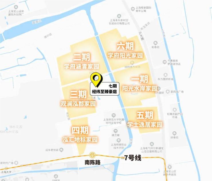 「经纬城市绿洲」7期位置上来看位于整个项目最中心位置,距离地铁7号线南陈路站步行距离约600米