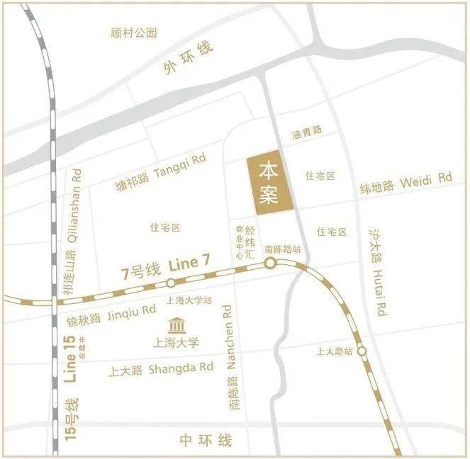 经纬·至臻豪庭在整个大盘中,位置属于非常不错的,与七号线南陈路直线距离约400米,步行可达。