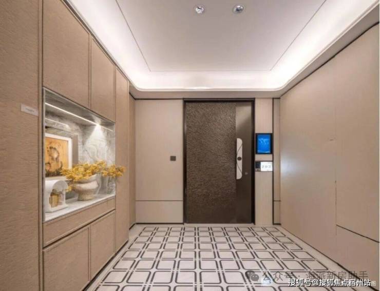 值得注意,这个梯厅面积有约8.4㎡,可塑性很强。既可当“外玄关”,用来收纳鞋类、行李箱等日常用品或不常用物件,拓展室内储物空间;也能摆放绿植、装饰画等,打造专属入户景观;细节上还预留“一支烟”的位置,让入户空间兼具实用与温度。