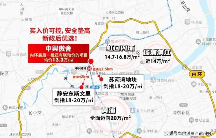 内环内优质住宅向来稀缺,中興傲舍作为 内环最后一批带联动价的项目 ,均价约13.3万/㎡。对比虹口同级地段价格,项目在价格层面优势明显,居住选择更具竞争力。