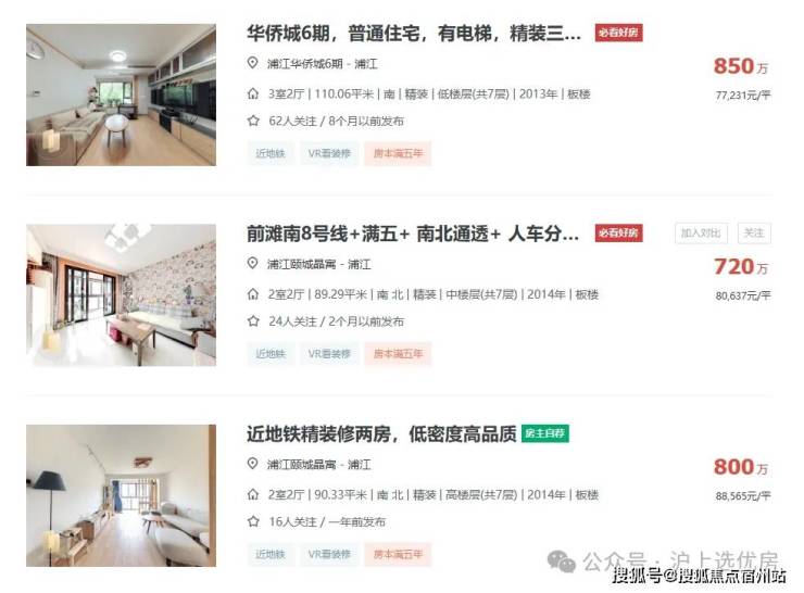 特别是浦江华侨城、浦江颐城晶寓、浦江颐城尚院这一批房龄较新的,挂牌价格大多稳定在8万/㎡左右。