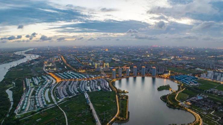 整个兰香湖区域内,高浓度的绿地水域占比,让周围建筑仿佛从自然里生长出来,距离黄浦江也非常之近。