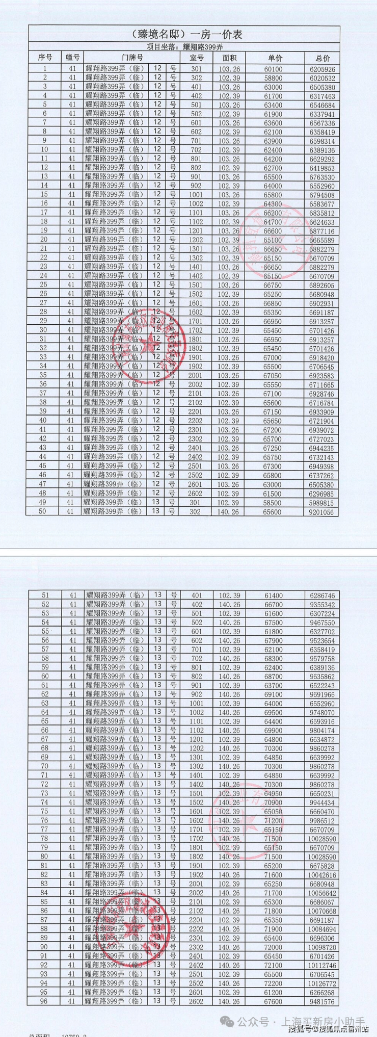 一房一价表