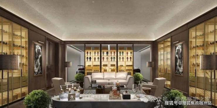 • 从容抵达步入地下会客厅,转角衣帽间换一身便服,轻松切换身份情绪