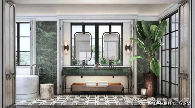 建筑面积约495㎡传家大宅,海派气质内外辉映;深色木饰面与柔和的刺绣主背景,框定空间层次格局,营造稳当厚重的氛围基调,法式留白的墙面与顶部造型,与原筑提取的典型拼花地砖相呼应,经典的精致与典雅,海派传家大宅的气度不言而明。