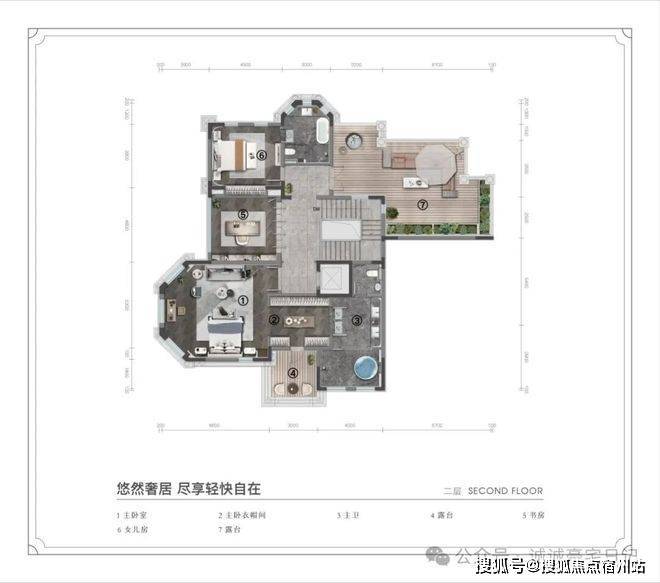 卧室配置更衣室、卫生间及阳台。主卧更显奢华,独立书房及步入式衣帽间诠释由内而外的儒雅气质,开阔露台留给诗和花的自由空间。