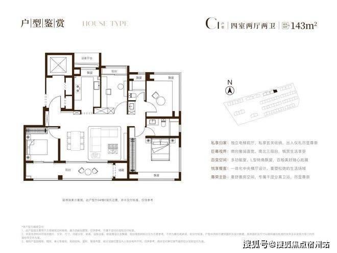 建面约143㎡四房,功能性更加匹配三代同堂或二胎家庭。3+1开间朝南+主卧套房设+南北通透+动静分离+独立书房,“一步到位”!