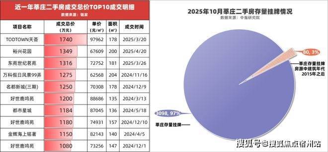 再看二手房,莘庄10年内房龄的次新房在整个板块中的挂牌量只有3%,说明莘庄次新房源极少,并没有很好的改善机会,这直接推高了次新的价格——莘庄二手房龄最短的TODTOWN天荟,在成交单价和成交总价上“独领风骚”。