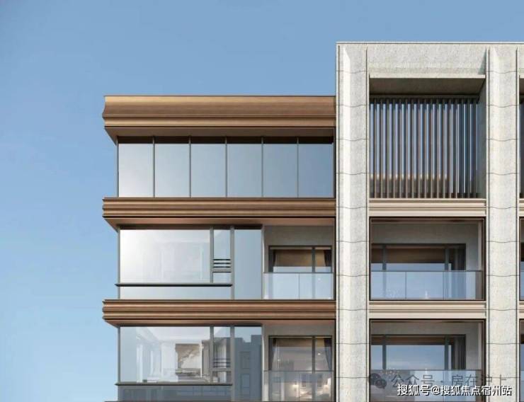 外立面可视部分均采用古铜色金属铝板、米黄色铝板或石材,边套户型更配备270°大转角飘窗。从正面、侧面到背面,立面设计保持精致统一,四面皆臻于完美,彰显高端质感。