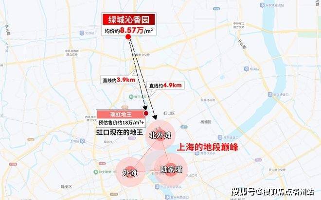 其次,项目距离预计约18万+的瑞虹地王直线约3.9km、距离北外滩直线约4.9km,几乎就是一脚油门就能抵达的存在。