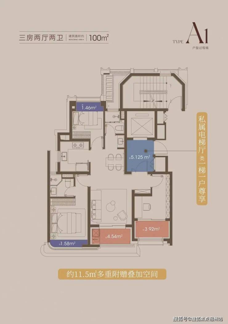 这意味着百平米的业主也能享受一整个独立的电梯厅,这是私密性的保障,更是生活的拓展。