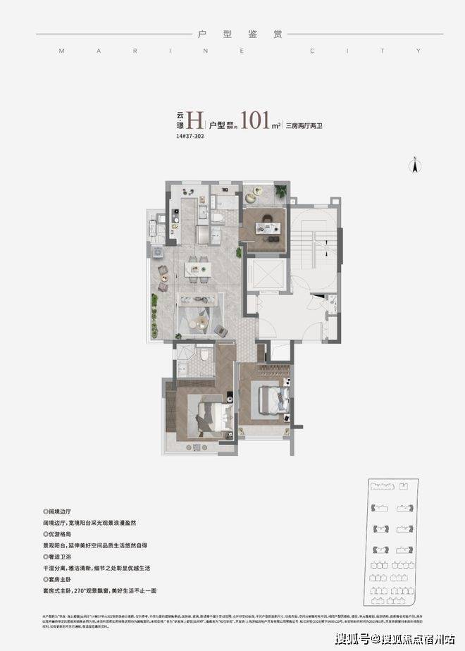 部分建面约100-101㎡H边厅户型,全景阳台搭配主卧L型转角大飘窗,三面采光+270°环幕视野,景观面堪比市区滨江顶豪,白天远眺松江人文,晚上看脚下星火流淌,十分惬意。✅✅华发海上都荟售楼处电话☎:400-833-6309【欢迎预约】