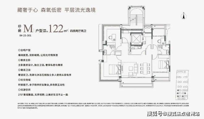 建面约122㎡的中叠四房,大平层式✅✅华发海上都荟售楼处电话☎:400-833-6309【欢迎预约】设计,宽尺横厅+阳台+270°主套飘窗采光条件极佳,每天早晨都被阳光晒醒。
