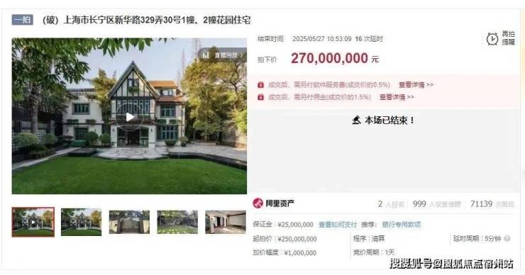 今年5月27日,新华路一幢535㎡花园别墅法拍,以2.7亿元成交, 成交单价达到50.46万元/㎡。