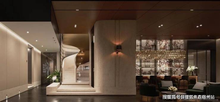 隐奢门庭:社区大门以 古琦黑奢石手工锻造弧形幕墙,将珠宝镶嵌工艺融入建筑肌理;