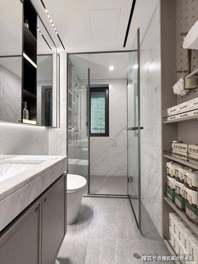 比如,厨房配了珍珠白吊柜、三组抽屉式拉篮合理搭配,调料架收纳、大容量踢脚抽、清洁用品收纳区,米面粮油、碗碟刀叉都可完美隐身。