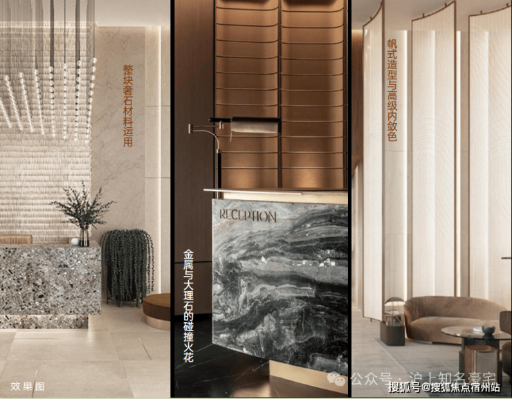 从内部大堂到走廊公区,考究的用材与色彩搭配尽显海派摩登气质与豪宅质感奢华!