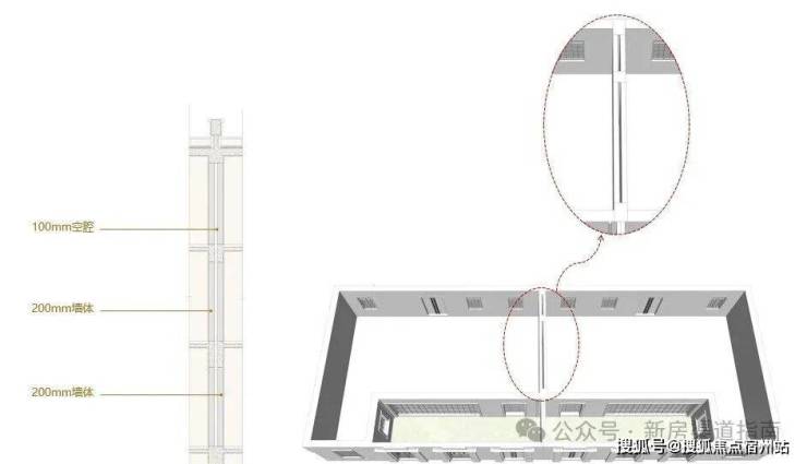 与其他风貌共用一堵分户墙不同的是,忻园的风貌别墅采用双层分户墙做法,每户之间没有共用墙。200mm厚度的墙体,中间还设置了100mm空腔,避免邻里的相互影响,带来舒适静谧的居住感受。