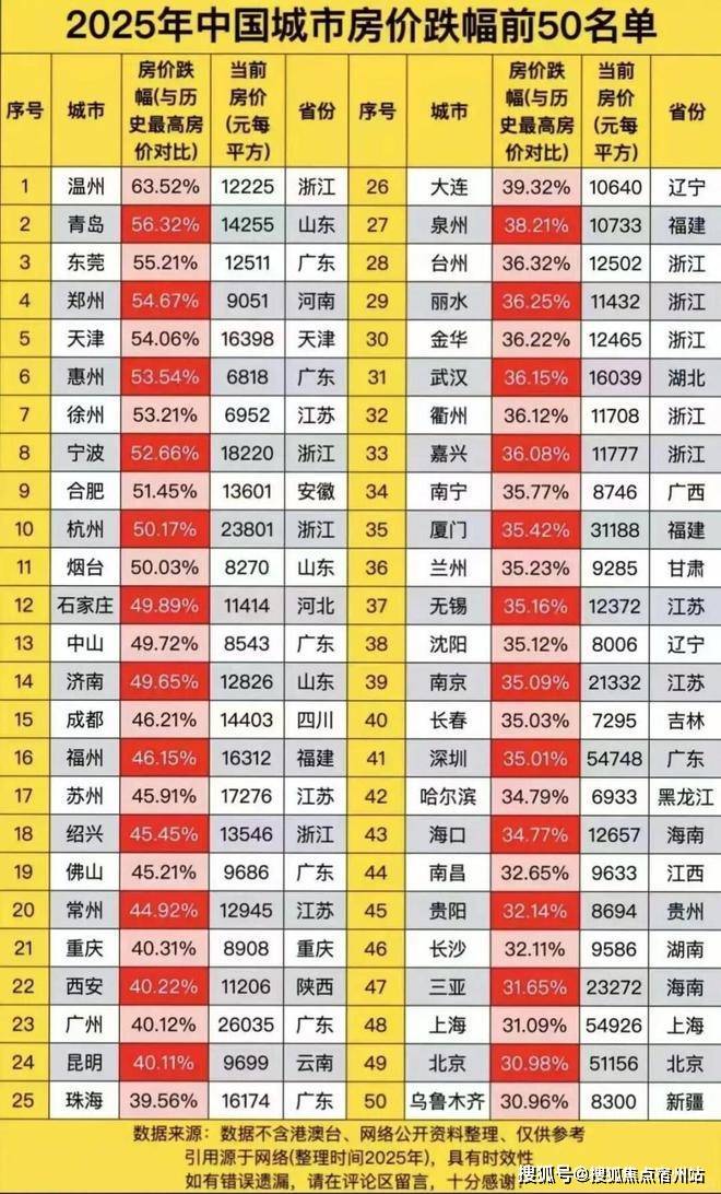 一线城市房价跌幅相对较小一些,而二、三、四线的城市则普遍出现大幅下跌,部分区域甚至腰斩。