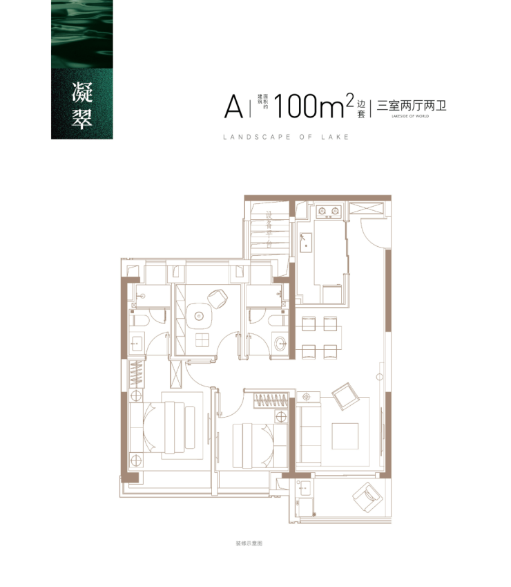 建面约100㎡A户型(边套)▼