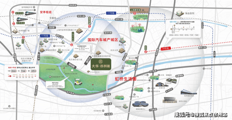 项目距离11号线上海汽车城站约2.4km,不算真正意义上的轨交房。轨交14号线横亘安亭境内的规划建议,也已提上日程。