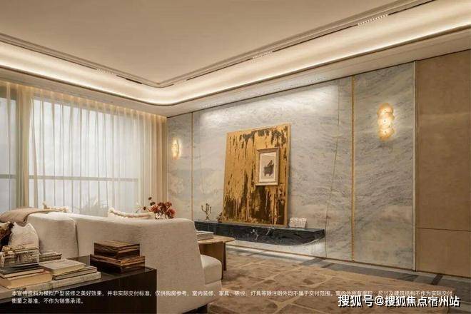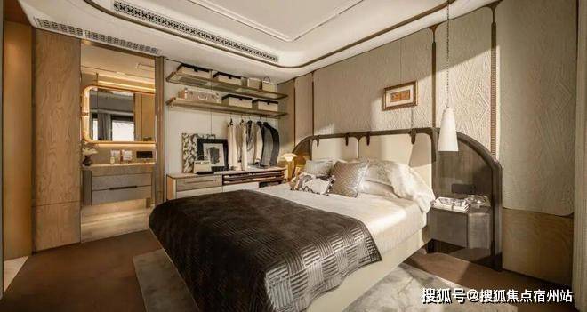 奢石材质与升级定制体系上,主卧标配约4.6米超大面宽贝母马赛克弧形皮革背景墙,地面采用和保利世博天悦顶豪项目同款的嵌铜荷叶拼地板,且嵌铜花色可以选择。玄关+背景墙升级为天然石材,真正实现 “一户一宅” 的高定体验。