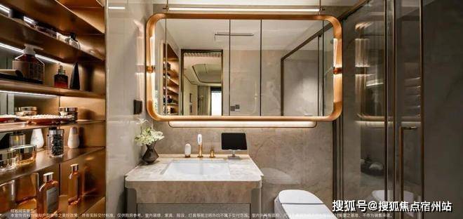 保利・外滩曜,这次还发现了女主人对于自我价值实现的需求,让女性从生活场景从“便捷需求”升级为“情感享受。”走进主卫,完全是为女主人量身打造的 “私人美容院”。这里有专属的 “女神三件套”:镜柜是高端定制款,内部带美妆冰箱,能放护肤品、化妆品。打开美容舱浴霸,温暖的红光能舒缓身心,;美妆龙头流出的水,经过 VC 净化滤芯,洗脸时温和清洁还能提亮肤色。