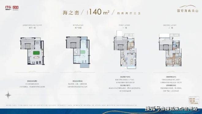 这个四房虽然建面只有138㎡,但因为是5层叠墅的高得房率,以及室内空间的高效利用,其功能和尺度感,给人的感觉十分惊艳。