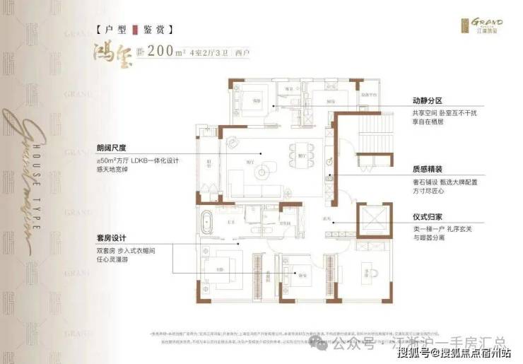 江湾鸿玺主推建面约200 ㎡豪装大4房,仅有32席位,总价在1500万级,或是中环旁错过不再有的“一步到位”纯改善产品。