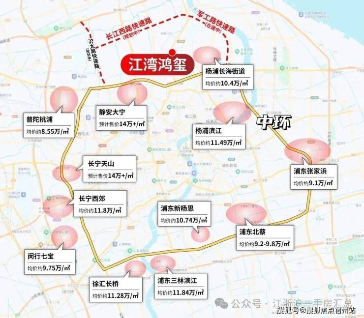 再来看中环沿线新房价格当前的格局。规划强势的如徐汇长桥,三林滨江,静安大宁,杨浦滨江等,价格全面突破11万+/㎡。