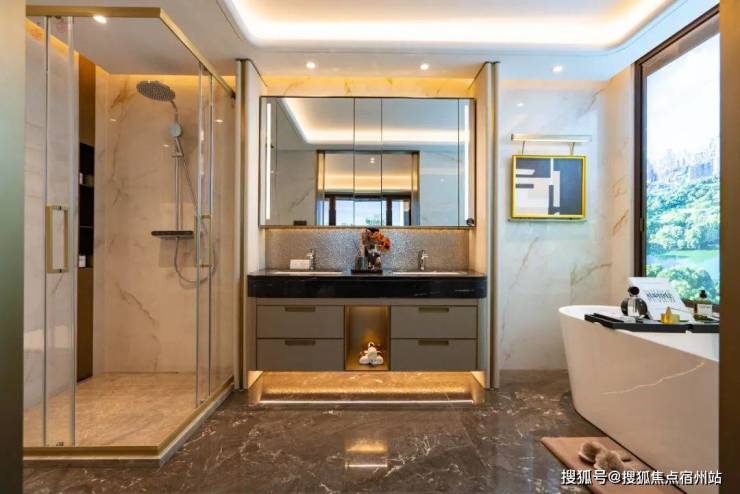 更有众多人性化细节,包括加热毛巾架,淋浴屏,定制台盆柜+镜柜等,省去后期定制比价的烦恼。