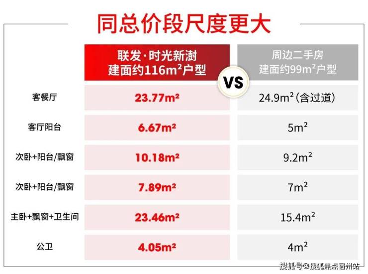 而建面约116m²户型的预估总价与周边二手次新99m²房源挂牌总价相近,但室内空间完全不是一个量级!