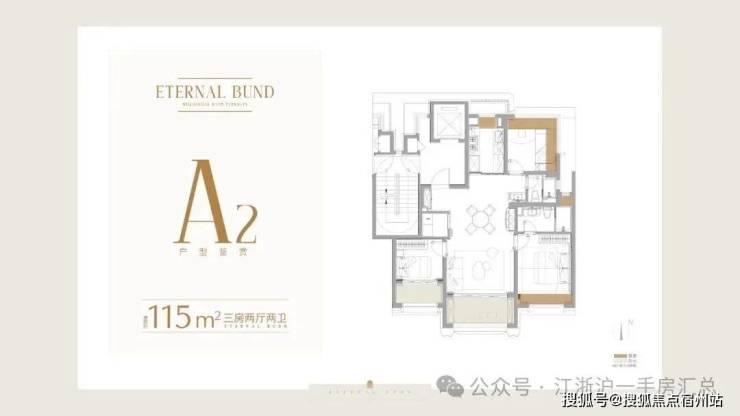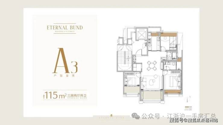 建面约115㎡3房2厅2卫户型: