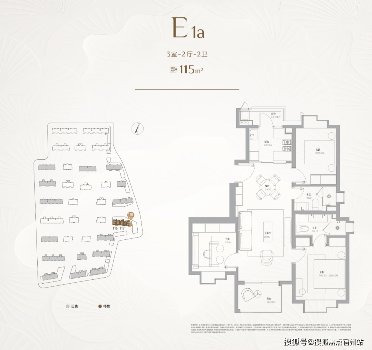 建面约115㎡的3房,三开间朝南的设计,户型的整体尺度感更大,餐厅甚至可以放下一张小圆桌。并且3房的实用性可以满足一个家庭的全生命周期需求。