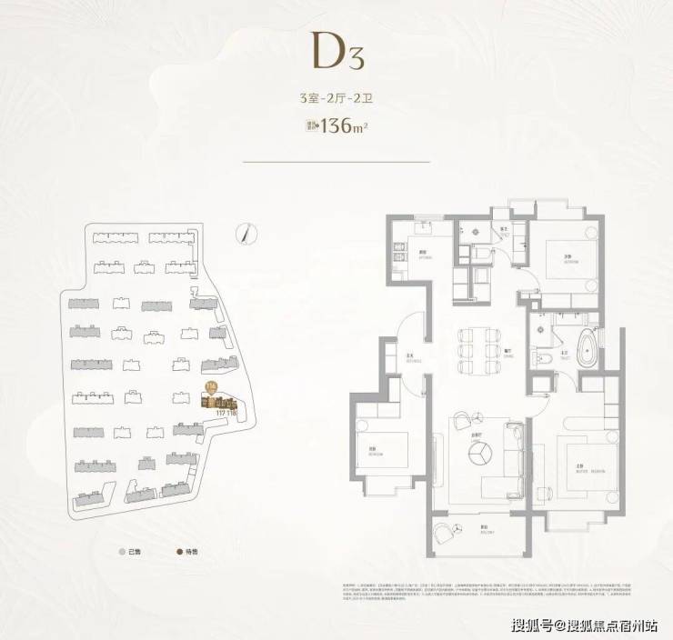 建面约136㎡3房,爆款中的爆款。南北通透的无连廊飞机户型,在设计感上真心出色!而且在整个中环沿线,建面约130-140㎡的房源是供应最稀缺的!