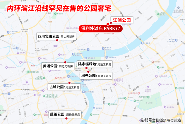 华侨城苏河湾(20w+)、弘安里(23w)、海泰北外滩(17w)等高端住宅星罗棋布,保利外滩启PARK77便扎根这条外滩滨江豪宅金线,与其它豪宅共筑滨江人居高点。