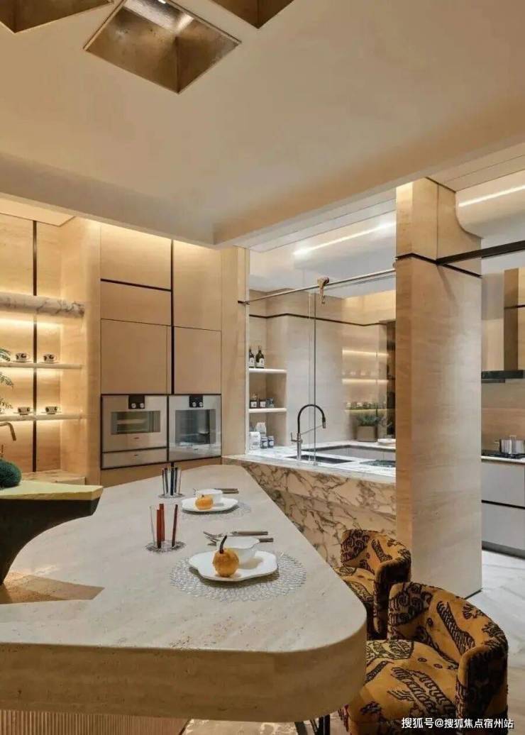 开放式布局消弭功能边界,大理石的冷冽肌理与皮革温润形成理性对话,金属线条勾勒出老城厢砖瓦的抽象轮廓,完成一场跨越时空的材质碰撞。